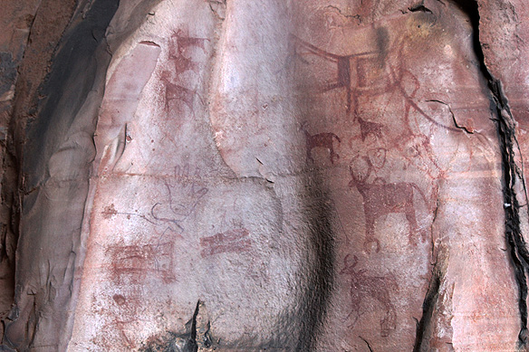 Published March 24, 2018 at 584 × 389 in Auditorium Cave, so named because of its size, contains paintings of bulls, buffaloes, deer, antelopes, a peacock, a tiger, and an outline of a child’s left hand. [Rock Shelter 3]