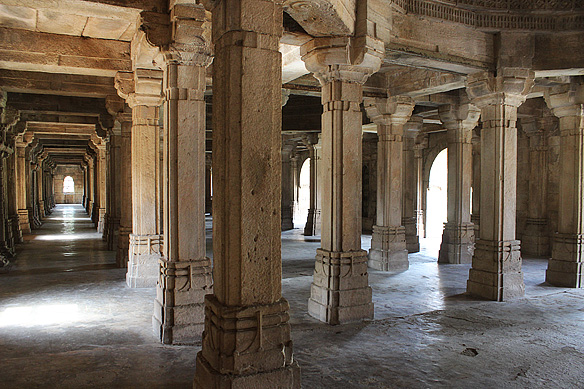 Saher-ki-Masjid, the “Mosque of the City” was the Gujarat Sultanate’s royal family and nobles’ private mosque. Covering 56 X 40 metres in area, it was built using a mixed Indian trabeate [pillar and beam] and Islamic arcuate [column and arch] style.