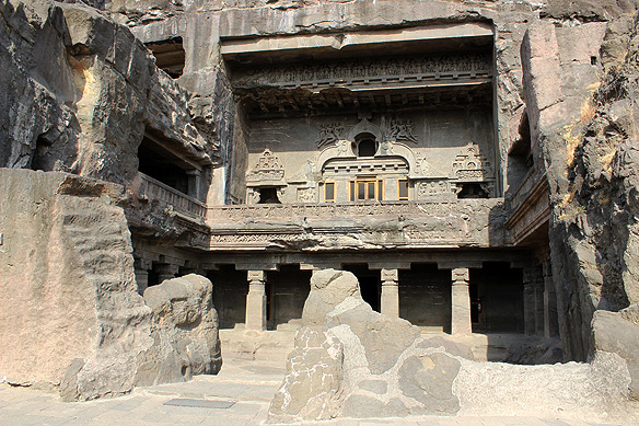 Published April 11, 2019 at 584 × 389 in The outer facade of Cave 10 or Vishvakarma Cave. Cave 10 is the only chaityagriha [prayer hall] in the set of 12 Buddhist caves at Ellora.