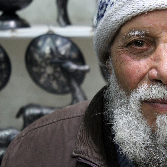 Published July 10, 2019 at 584 × 584 in Damascene artisan with his wares in a local handicraft shop. The ancient technique of damascene is a Meknes speciality.