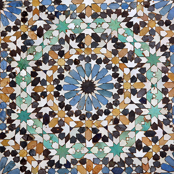 Detail, zellige decoration on Bab al-Mansour Gate.