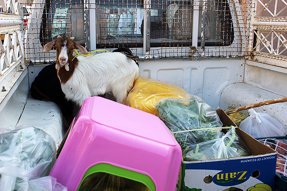 Published January 22, 2025 at 584 × 389 in The Omani shopping bag: Veggies, plastic tables, and a goat.