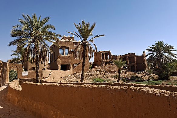 Published March 30, 2026 at 584 × 389 in Palm groves surround Ushaiqer heritage village in the Najd desert.