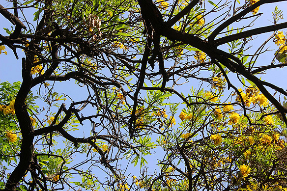 Flowers abloom on the Caribbean Trumpet tree.