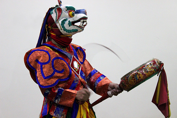 My last evening in Thimphu. A dance performance recreating the masked dances of the annual tsechu festival and folk dances from the inner mountain valleys. Not a great picture, because not everything can be captured by a DSLR. Some need to be experienced live. 🙂