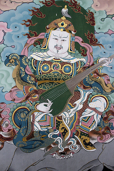 Published August 24, 2016 at 389 × 584 in Wall mural, Trashi Chhoe Dzong depicting Padmasambhava or Guru Rinpoche, the 8th Century Tantric master credited with bringing Buddhism into Bhutan.